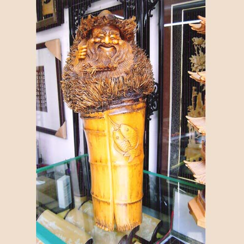竹雕,是中华民族文化艺术宝库中璀璨的名珠,千百年来悠久的历史进程,给后人留下了精湛绝伦的艺术精品,也造就了历代众多的竹雕匠师. 蔡氏竹雕系列工艺品是江西靖安雕刻精品厂设计并生产的手工艺品,作品荣获中国竹文化节暨国际竹业博览会第二、三、四届金奖等全国大奖二十余项和多项国家专利,先后销往欧美和东南亚十几个国家和地区,并被当作国宾礼品馈赠给外国元首和国际友人,1999年本厂成功为昆明世博园设计制作大型竹吊灯,获得了国内外人士的普遍赞誉.中央电视台、江西卫视、南昌电视台、湖南卫视、宜春电视台、江西日报、中国书画报等媒体对蔡氏竹雕作过多次专题报道和推介,是江西著名的一种特色文化艺术品.蔡氏竹雕的发展得到了各级领导的关怀与帮助,2007年全国两会期间江西省委孟书记在中央电视台“小崔会客”栏目中推介蔡氏竹雕产品,对蔡氏竹雕高度赞誉。蔡氏竹雕创始人蔡煜远现为中国民间文艺家协会会员、江西省工艺美术学会会员。 特色产品镂空雕笔筒,分单层、双层和三层,采用独特的镂空技法法,经十七道工序手工刻制而成.作品创意来源于古代建筑艺术,造型取法古代亭台楼阁之门窗、回廊、护拦等,图案衍化于中国古代吉祥图案、几何图案、秀织图案等,寓意吉祥,充分体现空灵、精巧、精微、玲珑剔透之艺术特独色.极具观赏装饰和收藏价值. 竹根雕作品风格各异,因材取势,随势象形,各具情态,刀法精练、线条流畅,作品注重天人合一,形神兼备。大件的作品古色古香极具装饰趣味;小件则既可装饰又可把玩,是常置案头的文房雅玩,经手把玩久之则似得人之灵气,愈加润泽,质感温和,更具神采。深受国内外宾客和艺术品收藏者的喜爱. 留青雕作品主要是竹刻插屏,此插屏由中国传统文房用品臂搁演化而来,精美的留青作品从木架上取下即为臂搁。臂搁为作书绘画时枕臂之用,也可镇纸。是书案重要饰物,富书卷气。常置案头,日夕磨挲,历时愈久,愈摸愈润,竹肌将由浅黄色自然泛红,精美的嫩黄色竹皮图纹与泛红的竹肌色差将更为鲜明,越衬托出精雕细琢的夺目可爱。 蔡氏竹雕系列工艺品还有:微雕、竹灯、竹挂屏和各大小壁挂;竹简有各种古今名文如《滕王阁序》、《增广贤文》、《兰亭序》、《孙子兵法》、《三十六计》等;竹根雕有历史人物、吉祥物、仿古器皿、文房雅玩和各种艺术摆件。.......