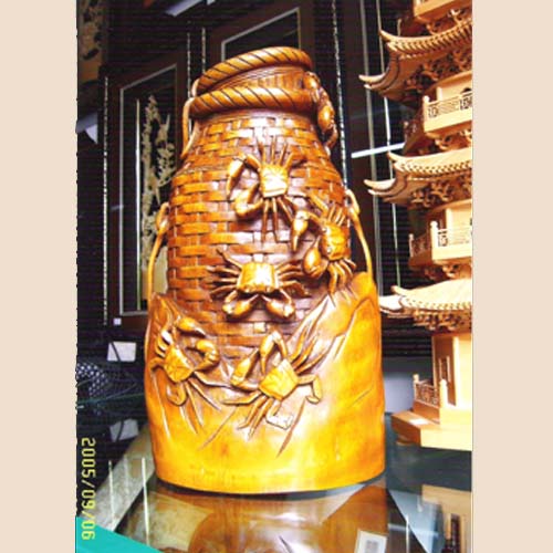 竹雕,是中华民族文化艺术宝库中璀璨的名珠,千百年来悠久的历史进程,给后人留下了精湛绝伦的艺术精品,也造就了历代众多的竹雕匠师. 蔡氏竹雕系列工艺品是江西靖安雕刻精品厂设计并生产的手工艺品,作品荣获中国竹文化节暨国际竹业博览会第二、三、四届金奖等全国大奖二十余项和多项国家专利,先后销往欧美和东南亚十几个国家和地区,并被当作国宾礼品馈赠给外国元首和国际友人,1999年本厂成功为昆明世博园设计制作大型竹吊灯,获得了国内外人士的普遍赞誉.中央电视台、江西卫视、南昌电视台、湖南卫视、宜春电视台、江西日报、中国书画报等媒体对蔡氏竹雕作过多次专题报道和推介,是江西著名的一种特色文化艺术品.蔡氏竹雕的发展得到了各级领导的关怀与帮助,2007年全国两会期间江西省委孟书记在中央电视台“小崔会客”栏目中推介蔡氏竹雕产品,对蔡氏竹雕高度赞誉。蔡氏竹雕创始人蔡煜远现为中国民间文艺家协会会员、江西省工艺美术学会会员。 特色产品镂空雕笔筒,分单层、双层和三层,采用独特的镂空技法法,经十七道工序手工刻制而成.作品创意来源于古代建筑艺术,造型取法古代亭台楼阁之门窗、回廊、护拦等,图案衍化于中国古代吉祥图案、几何图案、秀织图案等,寓意吉祥,充分体现空灵、精巧、精微、玲珑剔透之艺术特独色.极具观赏装饰和收藏价值. 竹根雕作品风格各异,因材取势,随势象形,各具情态,刀法精练、线条流畅,作品注重天人合一,形神兼备。大件的作品古色古香极具装饰趣味;小件则既可装饰又可把玩,是常置案头的文房雅玩,经手把玩久之则似得人之灵气,愈加润泽,质感温和,更具神采。深受国内外宾客和艺术品收藏者的喜爱. 留青雕作品主要是竹刻插屏,此插屏由中国传统文房用品臂搁演化而来,精美的留青作品从木架上取下即为臂搁。臂搁为作书绘画时枕臂之用,也可镇纸。是书案重要饰物,富书卷气。常置案头,日夕磨挲,历时愈久,愈摸愈润,竹肌将由浅黄色自然泛红,精美的嫩黄色竹皮图纹与泛红的竹肌色差将更为鲜明,越衬托出精雕细琢的夺目可爱。 蔡氏竹雕系列工艺品还有:微雕、竹灯、竹挂屏和各大小壁挂;竹简有各种古今名文如《滕王阁序》、《增广贤文》、《兰亭序》、《孙子兵法》、《三十六计》等;竹根雕有历史人物、吉祥物、仿古器皿、文房雅玩和各种艺术摆件。.......
