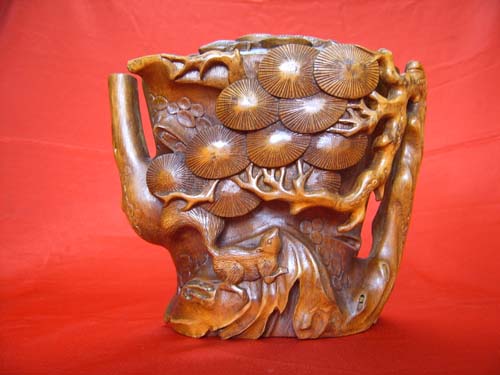 竹雕,是中华民族文化艺术宝库中璀璨的名珠,千百年来悠久的历史进程,给后人留下了精湛绝伦的艺术精品,也造就了历代众多的竹雕匠师. 蔡氏竹雕系列工艺品是江西靖安雕刻精品厂设计并生产的手工艺品,作品荣获中国竹文化节暨国际竹业博览会第二、三、四届金奖等全国大奖二十余项和多项国家专利,先后销往欧美和东南亚十几个国家和地区,并被当作国宾礼品馈赠给外国元首和国际友人,1999年本厂成功为昆明世博园设计制作大型竹吊灯,获得了国内外人士的普遍赞誉.中央电视台、江西卫视、南昌电视台、湖南卫视、宜春电视台、江西日报、中国书画报等媒体对蔡氏竹雕作过多次专题报道和推介,是江西著名的一种特色文化艺术品.蔡氏竹雕的发展得到了各级领导的关怀与帮助,2007年全国两会期间江西省委孟书记在中央电视台“小崔会客”栏目中推介蔡氏竹雕产品,对蔡氏竹雕高度赞誉。蔡氏竹雕创始人蔡煜远现为中国民间文艺家协会会员、江西省工艺美术学会会员。 特色产品镂空雕笔筒,分单层、双层和三层,采用独特的镂空技法法,经十七道工序手工刻制而成.作品创意来源于古代建筑艺术,造型取法古代亭台楼阁之门窗、回廊、护拦等,图案衍化于中国古代吉祥图案、几何图案、秀织图案等,寓意吉祥,充分体现空灵、精巧、精微、玲珑剔透之艺术特独色.极具观赏装饰和收藏价值. 竹根雕作品风格各异,因材取势,随势象形,各具情态,刀法精练、线条流畅,作品注重天人合一,形神兼备。大件的作品古色古香极具装饰趣味;小件则既可装饰又可把玩,是常置案头的文房雅玩,经手把玩久之则似得人之灵气,愈加润泽,质感温和,更具神采。深受国内外宾客和艺术品收藏者的喜爱. 留青雕作品主要是竹刻插屏,此插屏由中国传统文房用品臂搁演化而来,精美的留青作品从木架上取下即为臂搁。臂搁为作书绘画时枕臂之用,也可镇纸。是书案重要饰物,富书卷气。常置案头,日夕磨挲,历时愈久,愈摸愈润,竹肌将由浅黄色自然泛红,精美的嫩黄色竹皮图纹与泛红的竹肌色差将更为鲜明,越衬托出精雕细琢的夺目可爱。 蔡氏竹雕系列工艺品还有:微雕、竹灯、竹挂屏和各大小壁挂;竹简有各种古今名文如《滕王阁序》、《增广贤文》、《兰亭序》、《孙子兵法》、《三十六计》等;竹根雕有历史人物、吉祥物、仿古器皿、文房雅玩和各种艺术摆件。.......